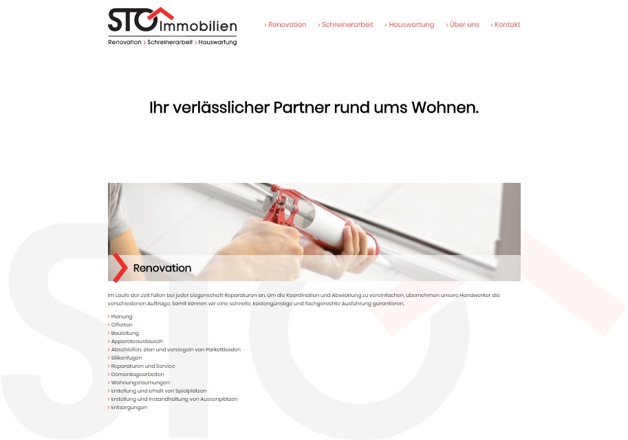 Für die STO Immobilien GmbH wurde eine neue Webseite auf Basis von Grav erstellt. Dabei wurde das Aussehen von den existierenden Flugblättern übernommen. Schnell und kosteneffizient konnten die Anforderungen des Kunden zufriedengestellt werden.